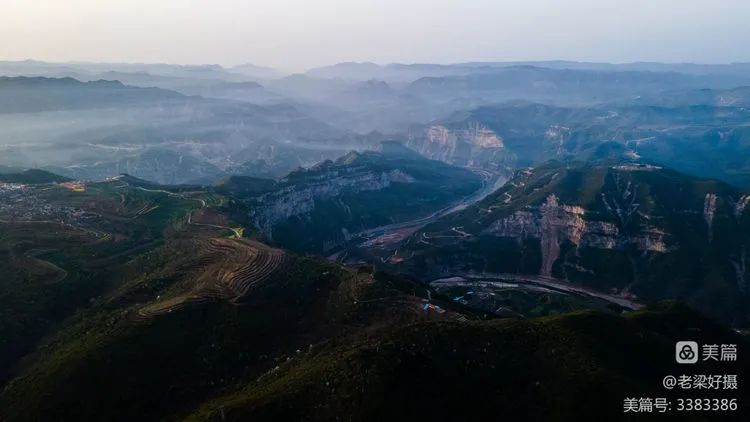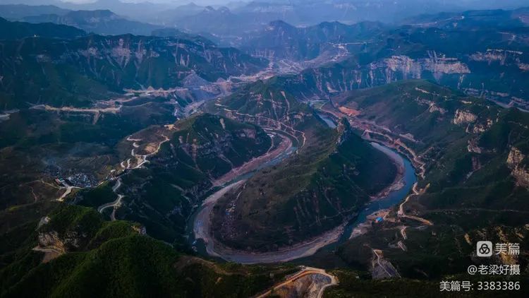 沁河从沁源发源,奔流200多公里后,到达泽州县的南岭镇高会村,在此来了一个近乎360度大转弯,这就是著名的“沁河第一湾”。沁河水九曲十八弯。四周群峰似涛,山色如黛,云雾缭绕,重峦叠嶂。