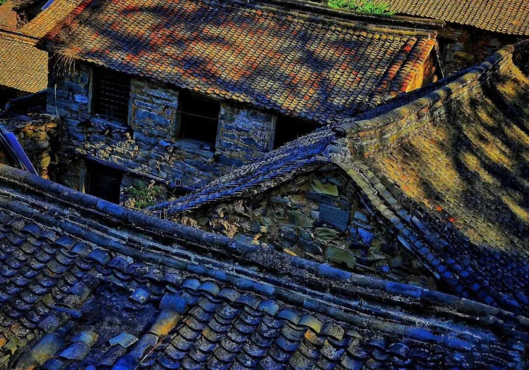 当夕阳西斜,余晖为整个村落披上金纱。那一刻,石头有了温度,有了色彩。光影在老墙面上缓慢移动,勾勒出明暗交错的画意。炊烟从石砌的烟囱里袅袅升起,犬吠声在石巷间悠悠回荡。