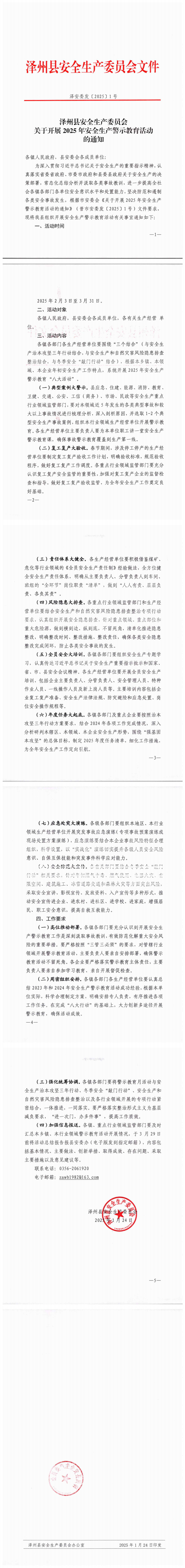 泽州县安全生产委员会 关于开展2025年安全生产警示教育活动的通知