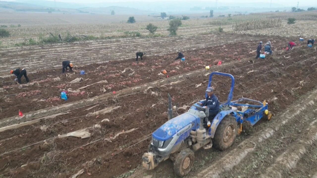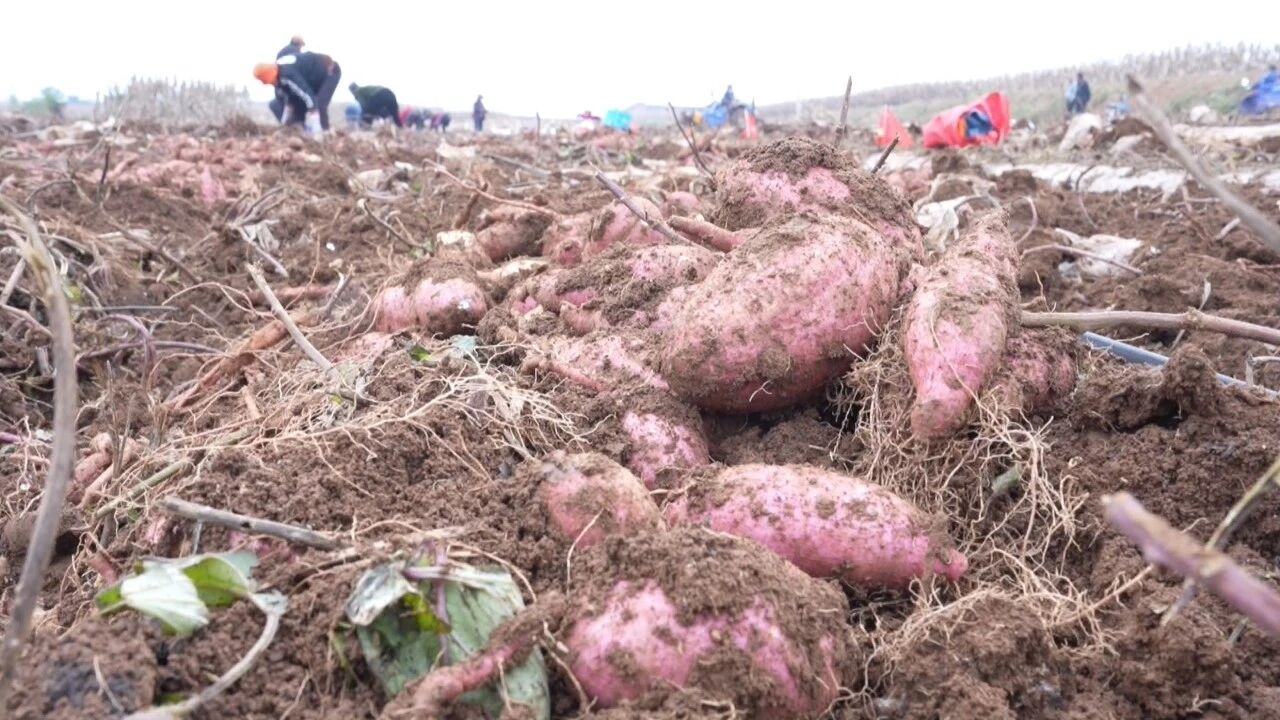 在巴公镇柳坡掌村的百亩红薯田,30多人的抢收队伍正紧张忙碌,熟练地进行刨薯、去泥、装筐等作业。受近期持续阴雨天气影响,导致部分农田土壤水分饱和、泥泞湿滑,除使用收获机械外,当地还调用了小型挖掘机、增加了人手,抢晴抓雨确保收获进度。