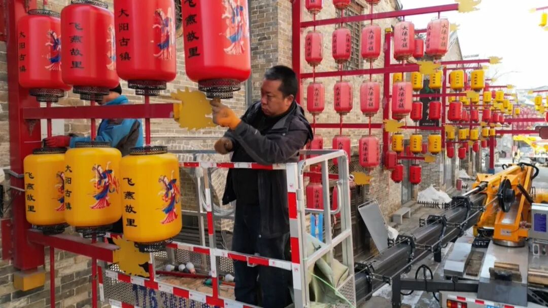 走进大阳古镇景区,工作人员正忙着更换彩灯、推进萌宠乐园平整挖掘及各类新春布置工作,全力为游客打造沉浸式新春游玩场景。