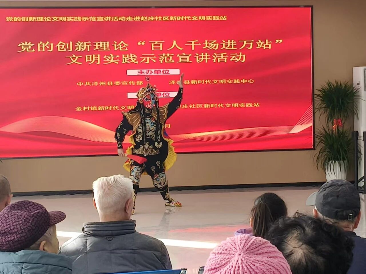 2月10日,党的创新理论“百人千场进万站”文明实践示范宣讲活动走进金村镇赵庄社区新时代文明实践站。活动以接地气、有温度的形式传递党的声音、送上新春关怀,推动党的创新理论在基层落地生根、开花结果。