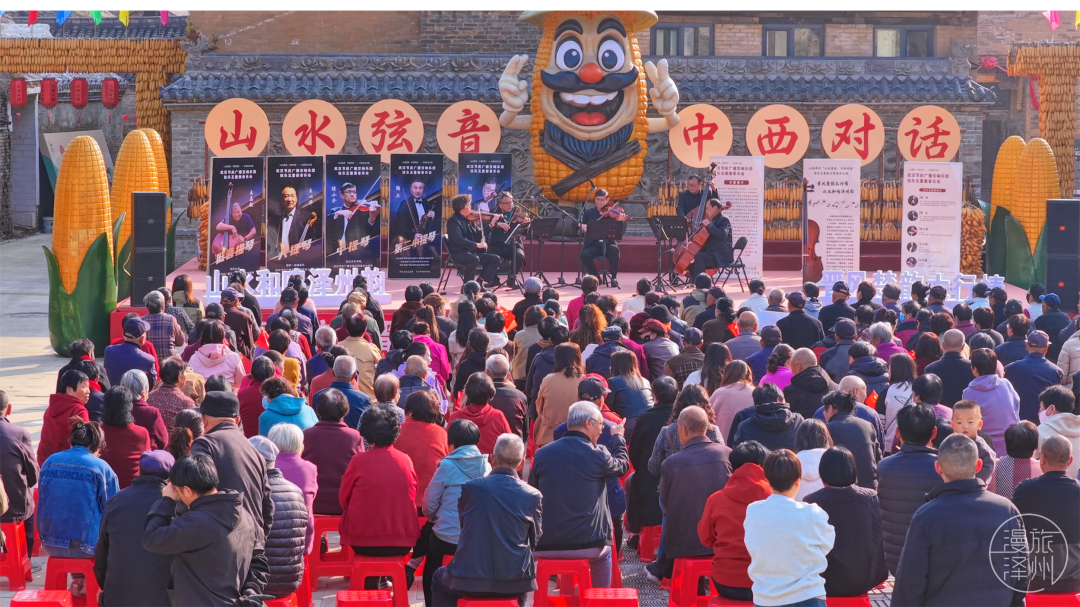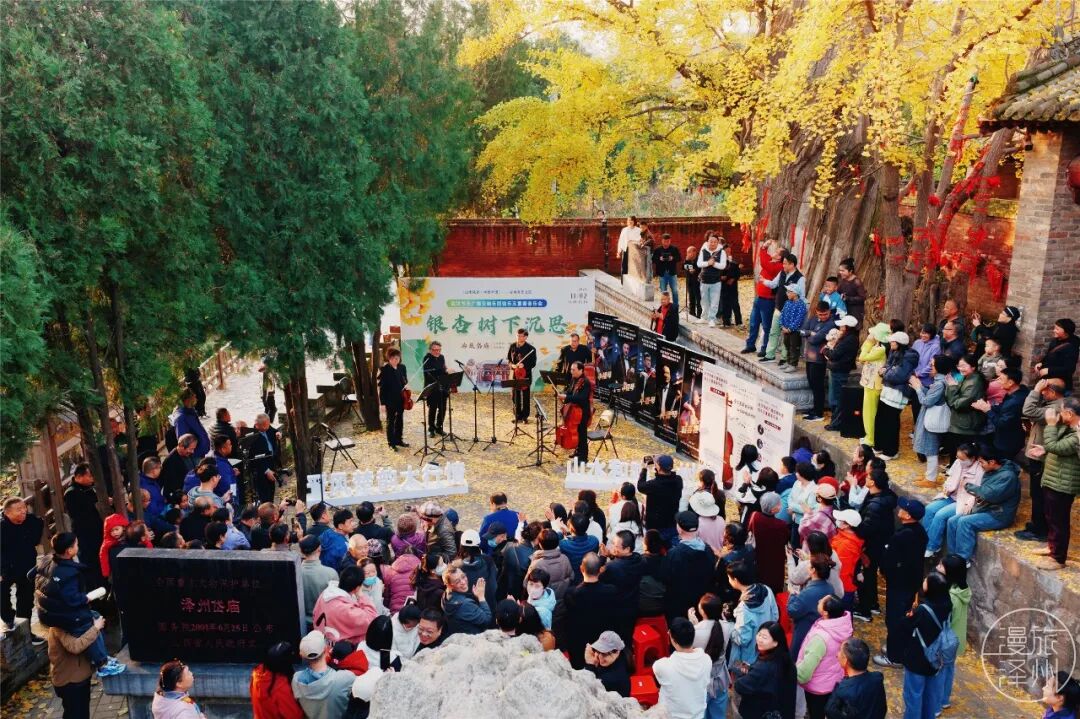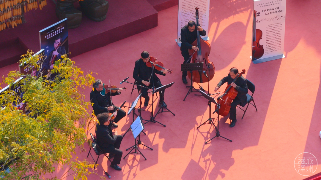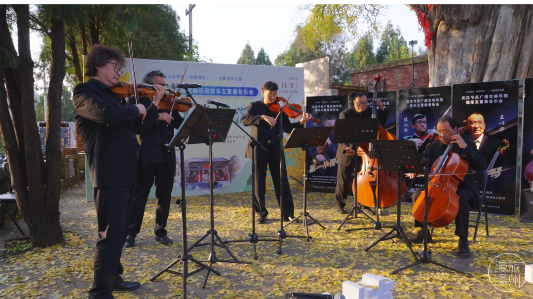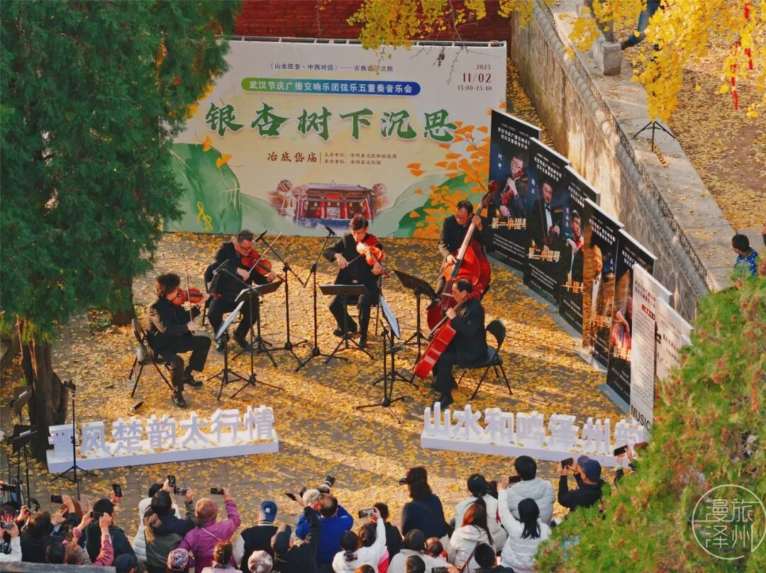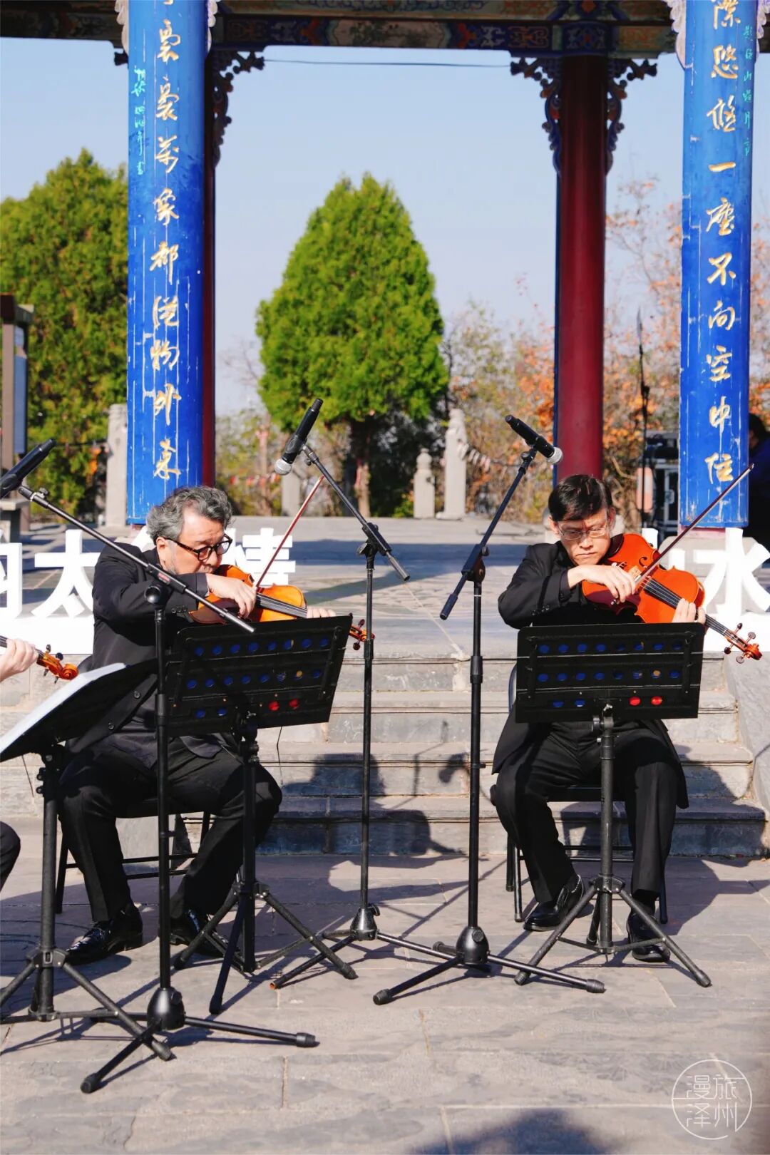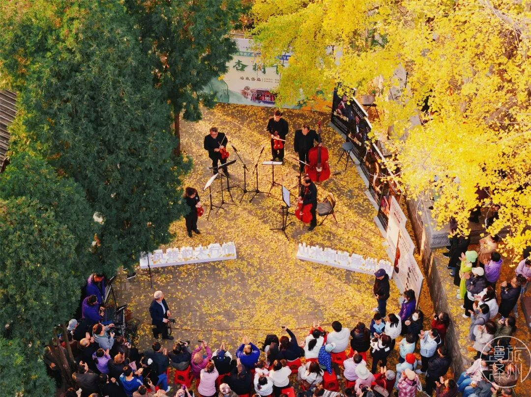 11月2日,由泽州县文化和旅游局主办、泽州县文化馆承办的山西泽州“山水弦音·中西对话”弦乐五重奏音乐之旅继续启程,在珏山过月亭前、在千年冶底银杏树下、在大阳古镇的青石巷陌间、在大阳中学的校园里,弦乐之声悠然回响。这场穿越山岳、古树、古镇与校园的音乐之旅,为现场观众带来一场视听盛宴,众人直呼过瘾。