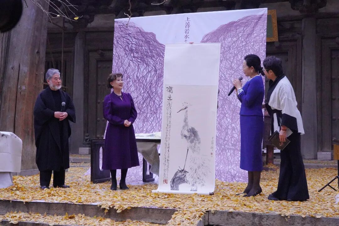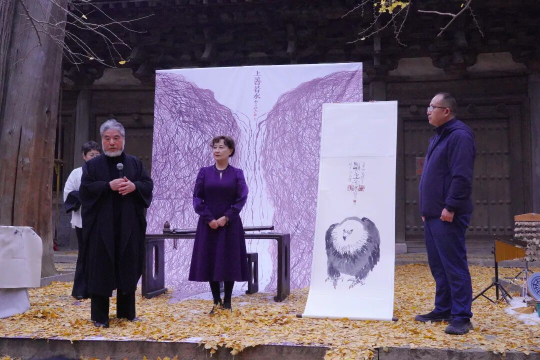 琴曲刚收尾,樊洲老师直接现场挥毫,把琴音里的“秋意”、“禅意”画成了两幅书画,当场赠给了青莲寺古建艺术博物馆与山西辉昊煤安科技有限公司永久珍藏。