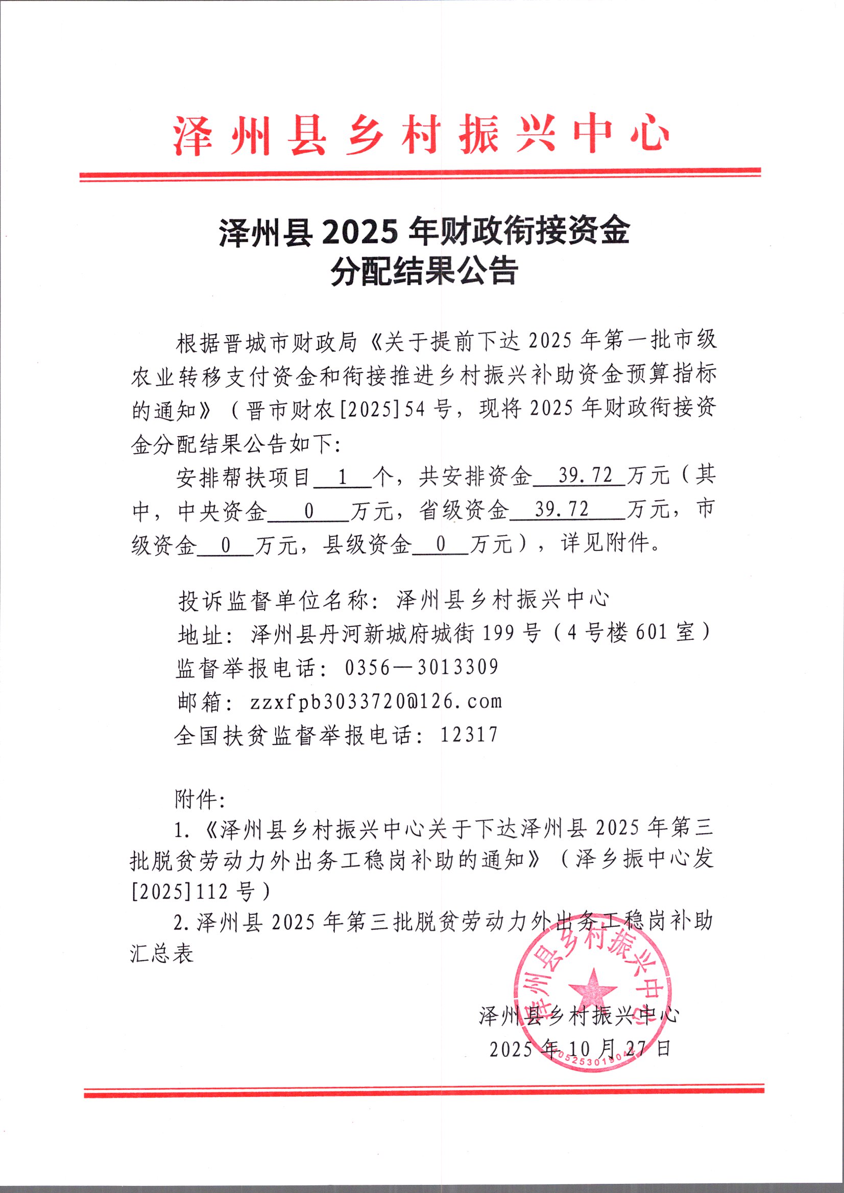附件:附件1:《泽州县乡村振兴中心关于下达泽州县2025年第三批脱贫劳动力外出务工稳岗补助的通知》(泽乡振中心发[2025]年112号).pdf