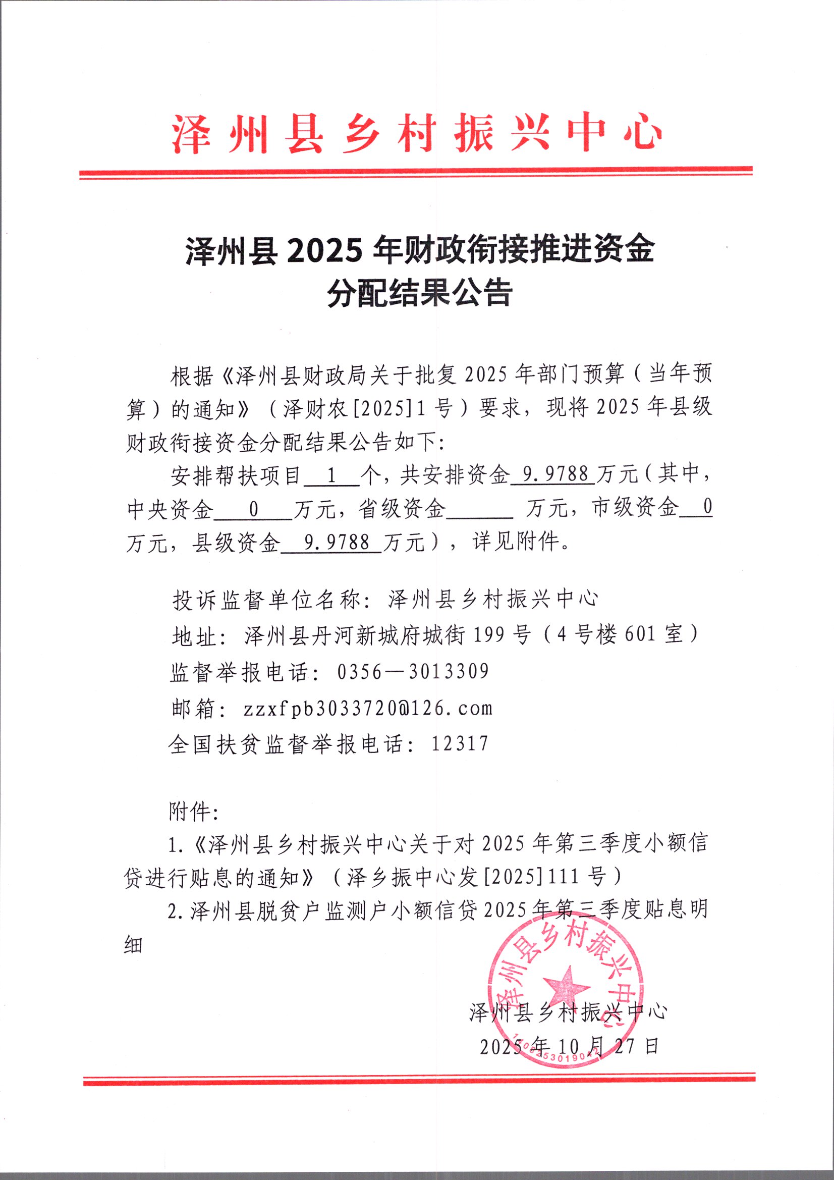 附件:附件1:《泽州县乡村振兴中心关于对2025年第三季度小额信贷进行贴息的通知》(泽乡振中心发[2025]111号).pdf