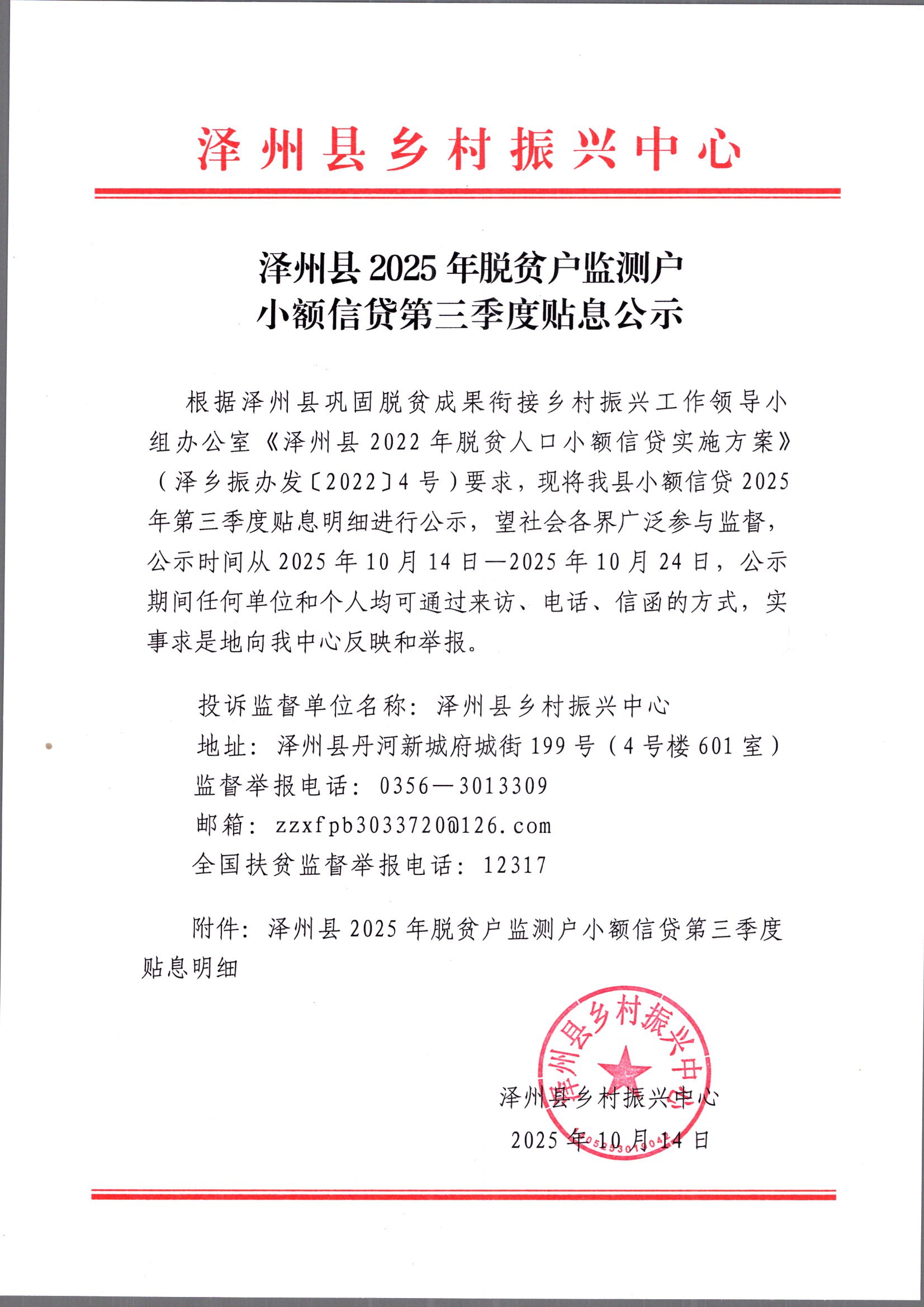 2025年三季度小额信贷贴息名单公示