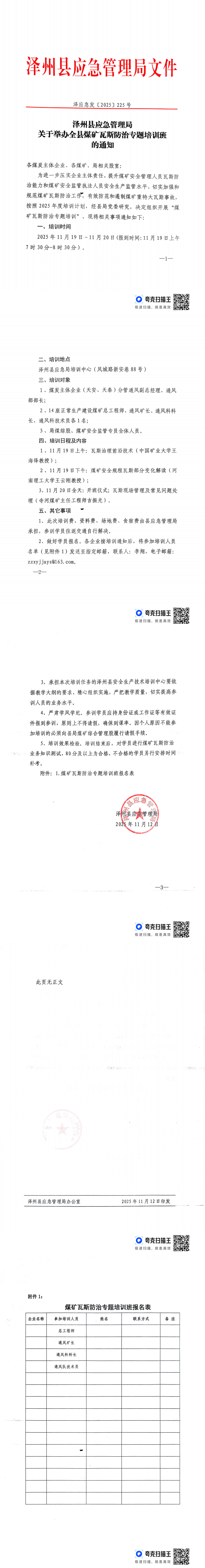 泽州县应急管理局 关于举办全县煤矿瓦斯防治专题培训班的通知