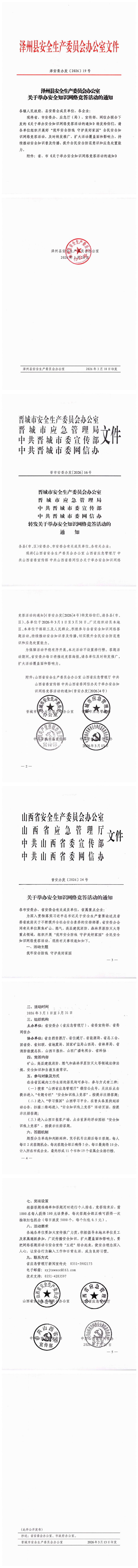 泽州县安全生产委员会办公室 关于举办安全知识网络竞答活动的通知