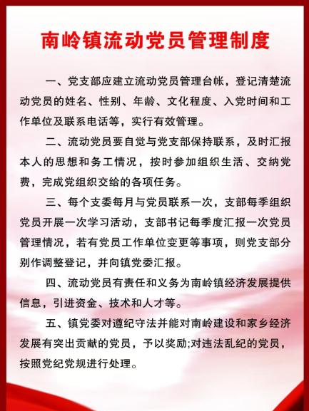建台账。建立流动党员管理台账,开展“党组织找党员,党员找党组织”活动,充分利用党员的工作圈、亲属圈、朋友圈等渠道,聚焦流动党员基本情况、流入地点、从事职业、联系方式等要点,常态化开展流动党员摸底排查,建立528名流动党员动态管理台账,对流动党员做到知去向、知现状、知思想。